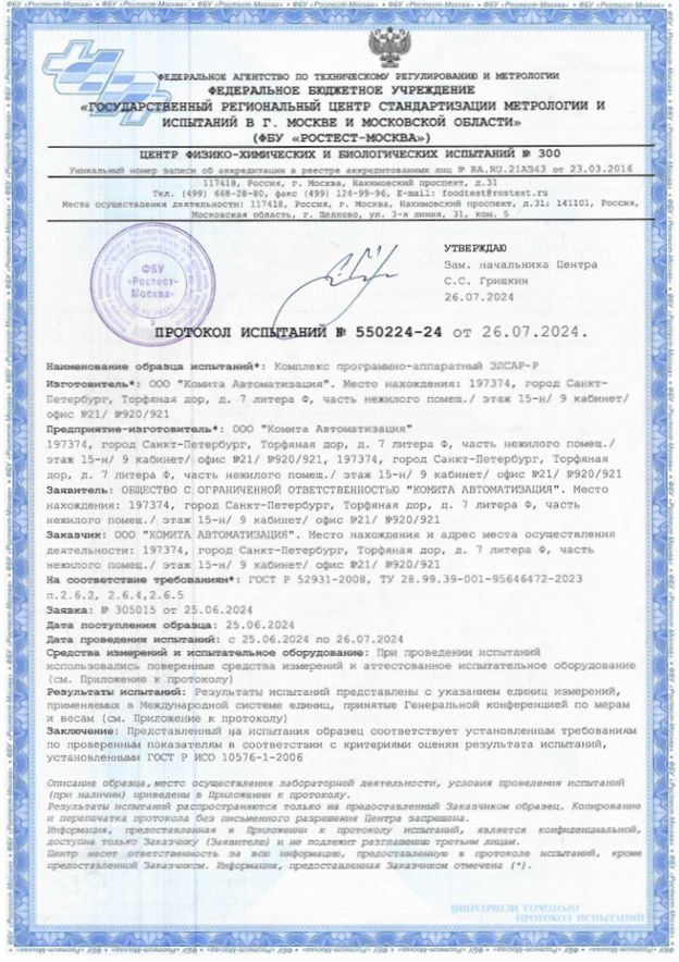 В лаборатории ФБУ «Ростест-Москва» успешно проведены испытания ПАК ЭЛСАР-Р на стойкость к воздействию механических нагрузок и климатических факторов